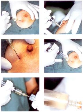 5.慢慢將抽吸把手恢復(fù)原位,解除負(fù)壓后,改變穿刺方向,